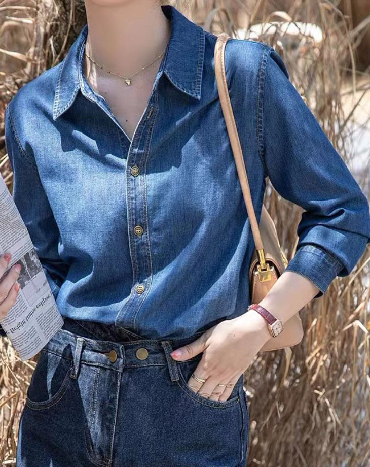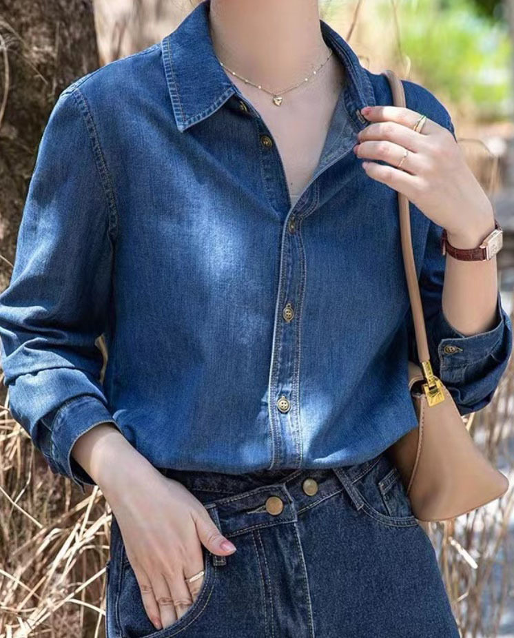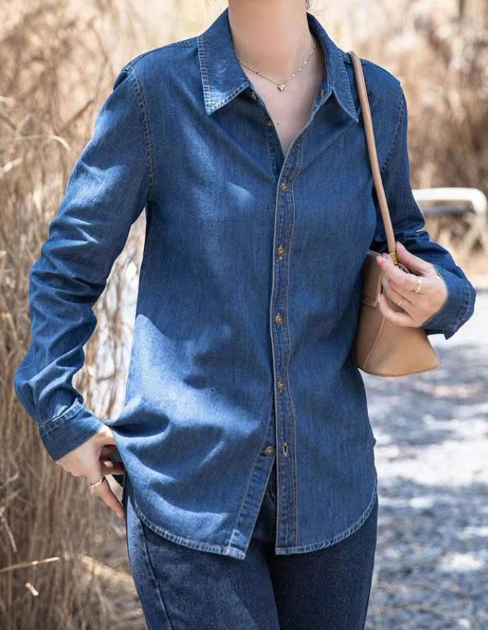 当前位置:南京铮芝奇科技有限公司 > 商品网购 > 女士服装/内衣 > 衬衫 >  不卷边深蓝色软牛仔衬衫女秋冬季内搭叠穿长袖衬衣