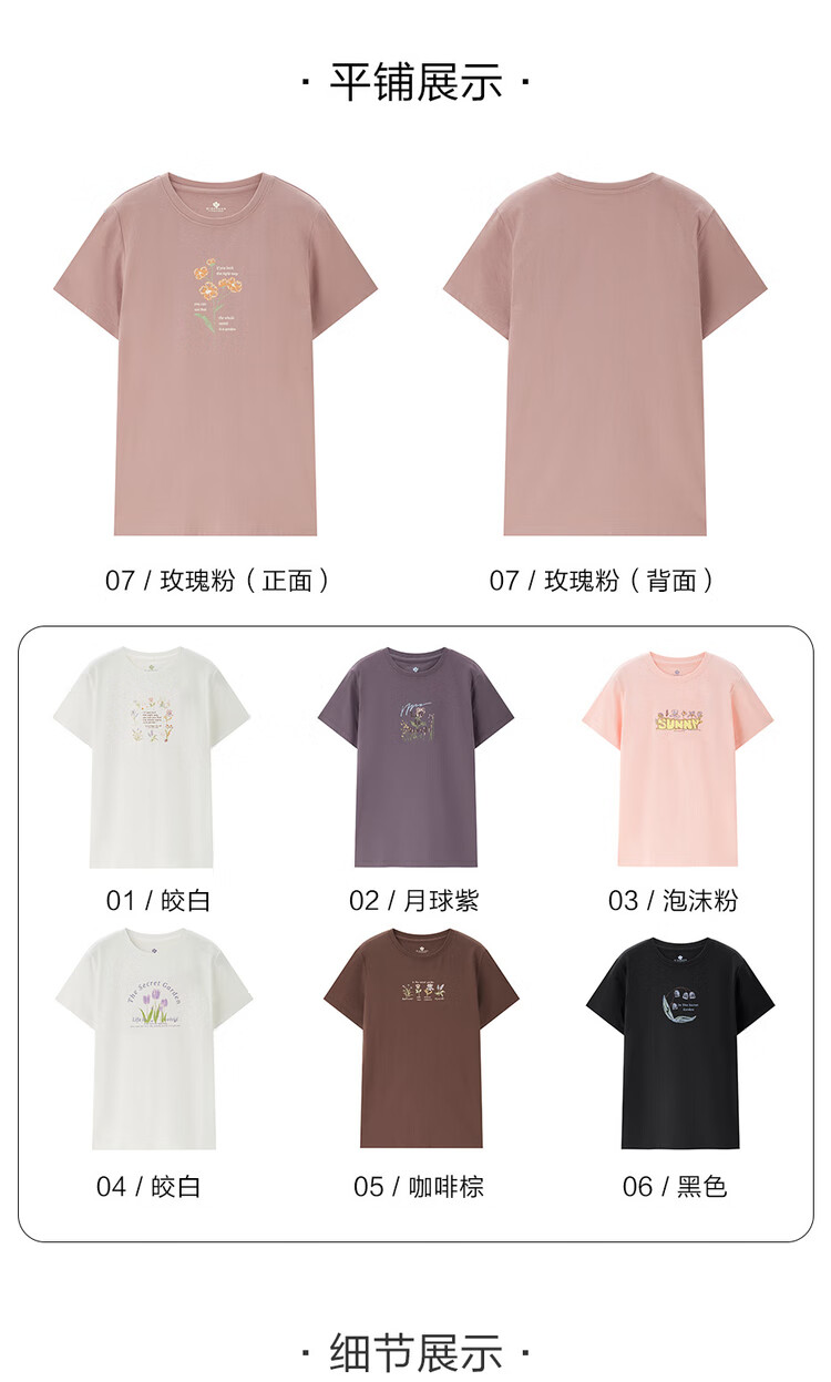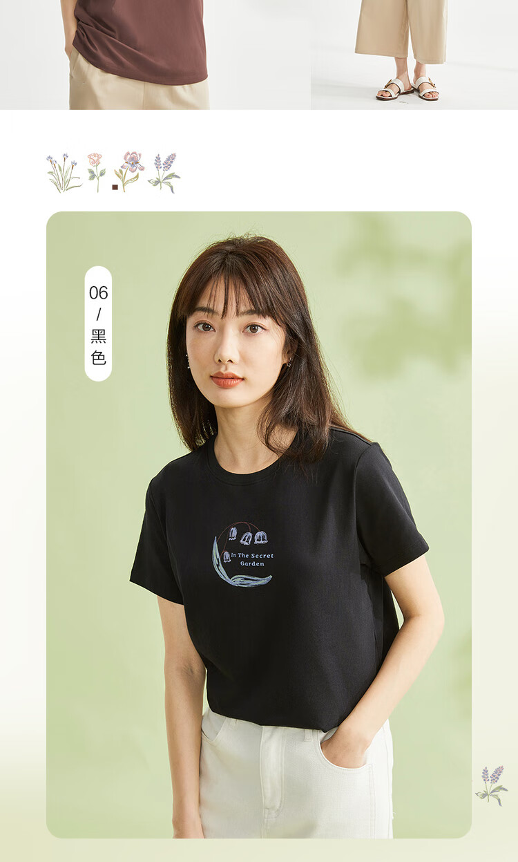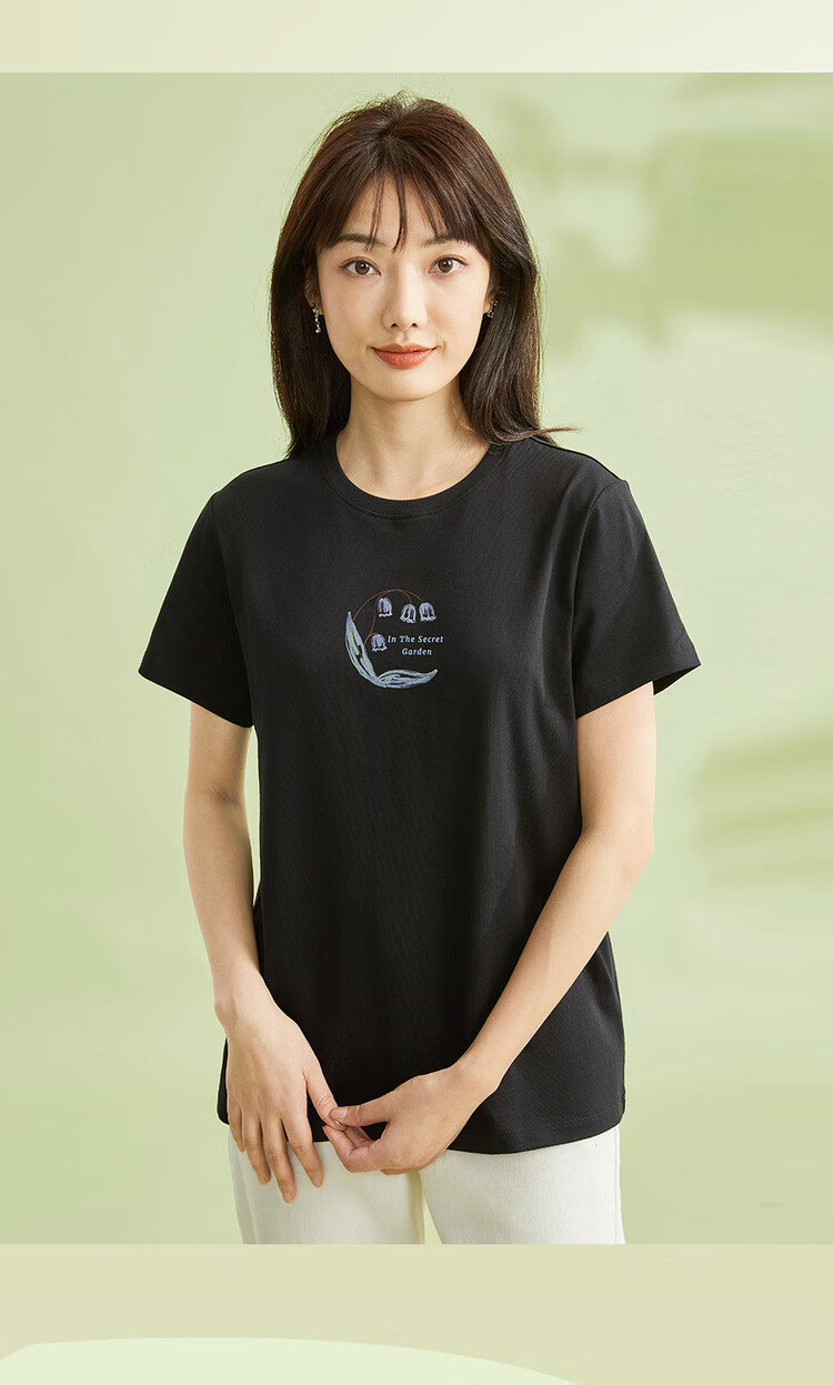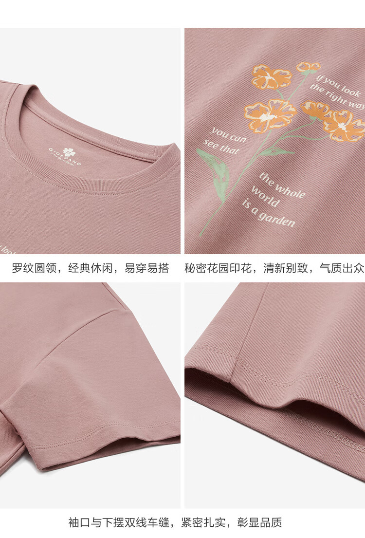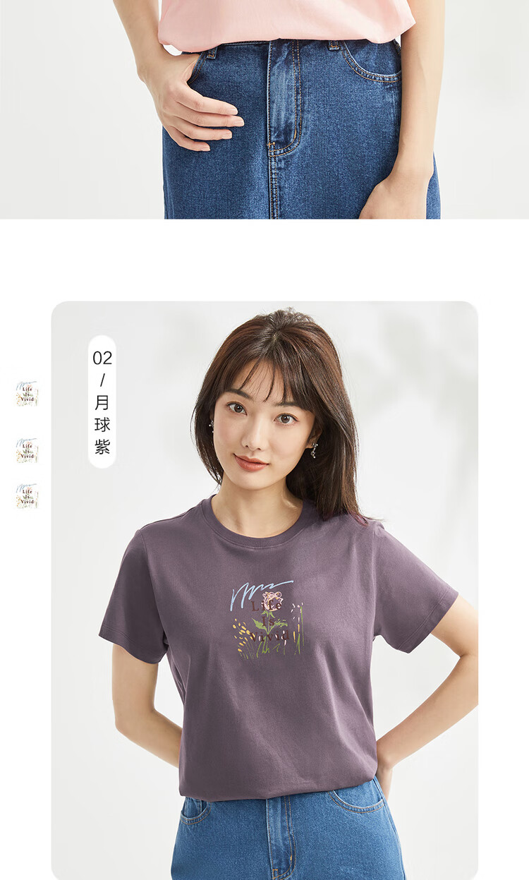 批发女装T恤棉质针织秘密花园印花圆领短袖05393387紫