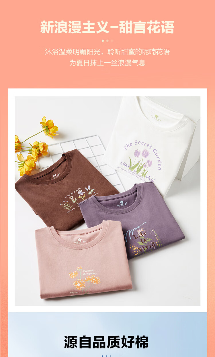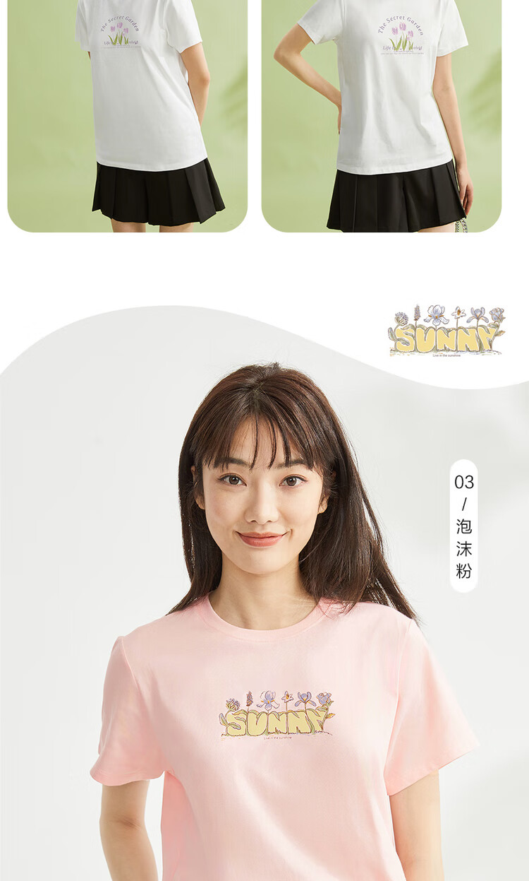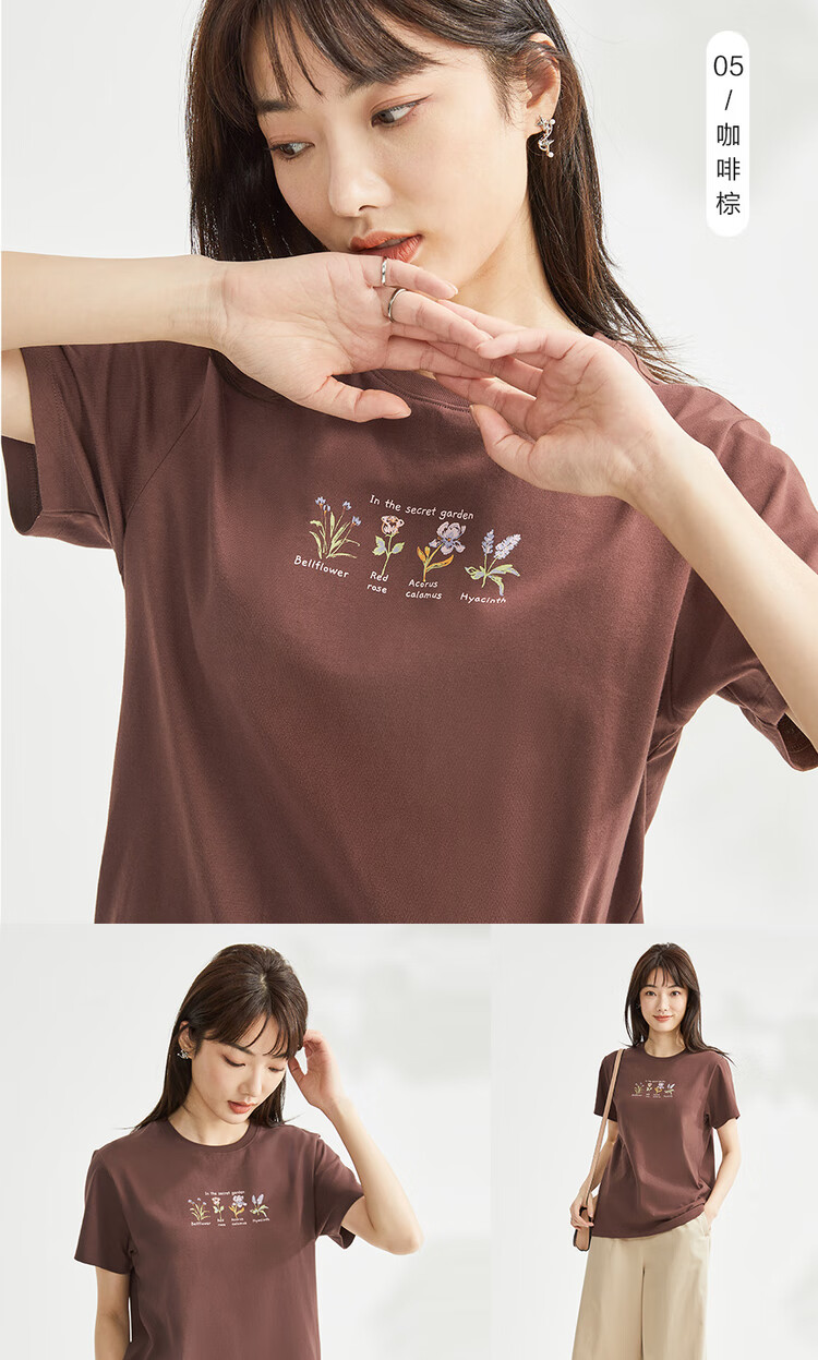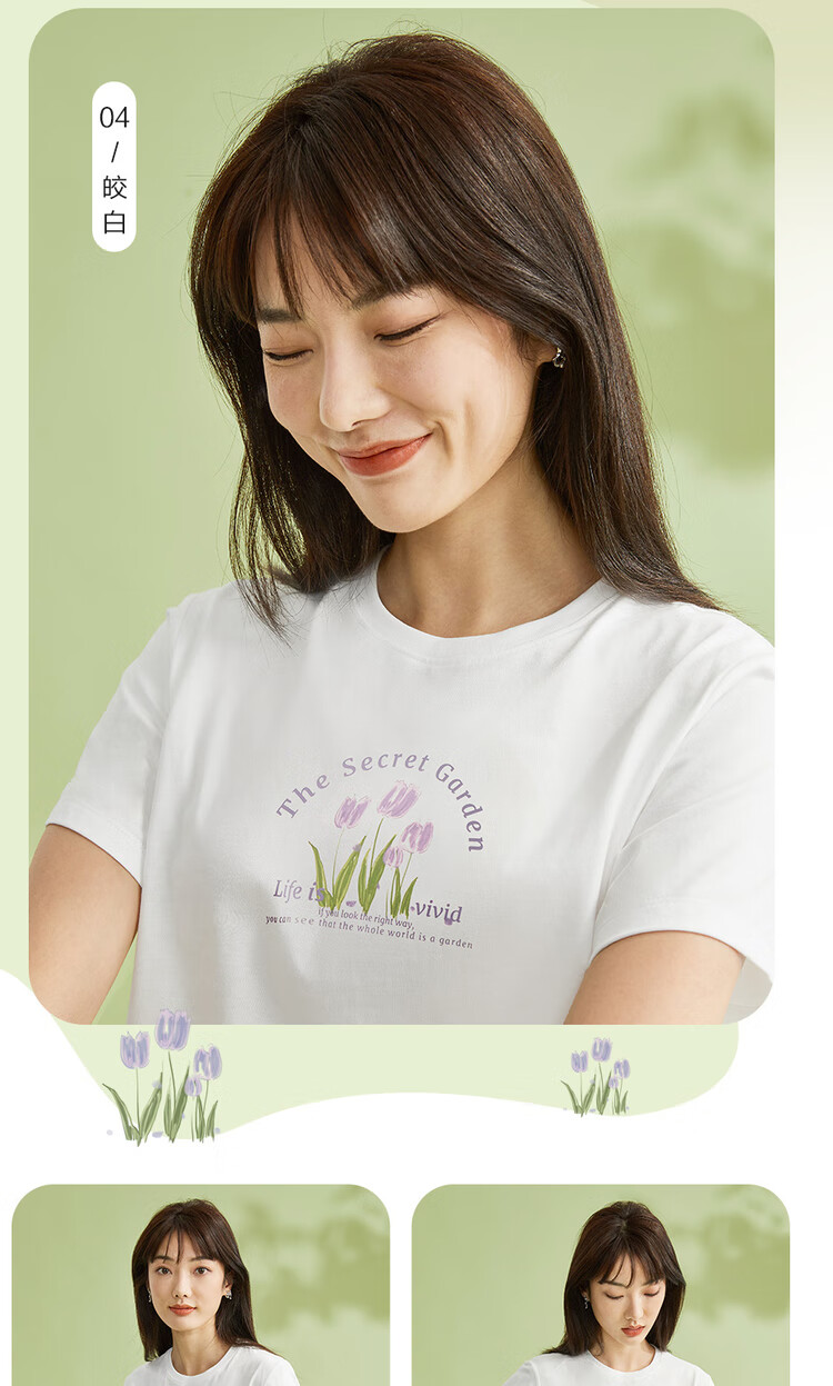 批发女装T恤棉质针织秘密花园印花圆领短袖05393387紫