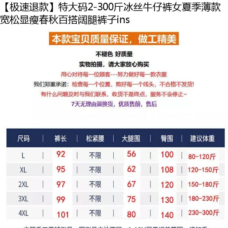 批发特大码2-300斤冰丝牛仔裤女夏季薄款宽松显瘦